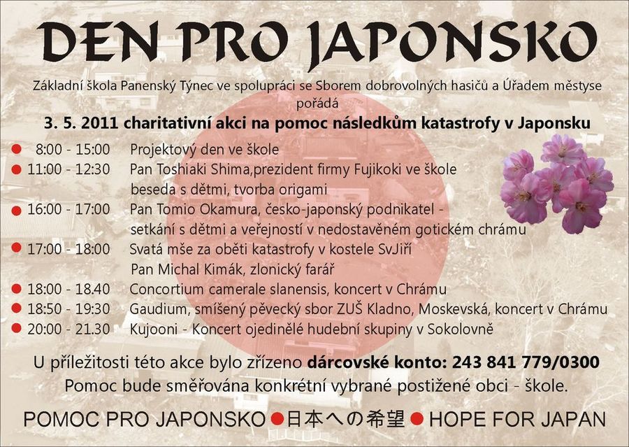 Dne 3.5.2011 proběhne v Panenském Týnci "DEN PRO JAPONSKO"