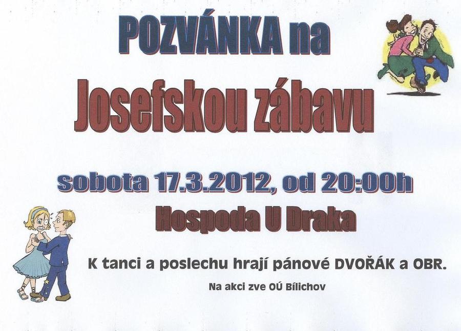 Dovolujeme si Vás pozvat na Josefskou zábavu, která se koná 17.3.2012 od 20:00h - "Hospoda U Draka".
