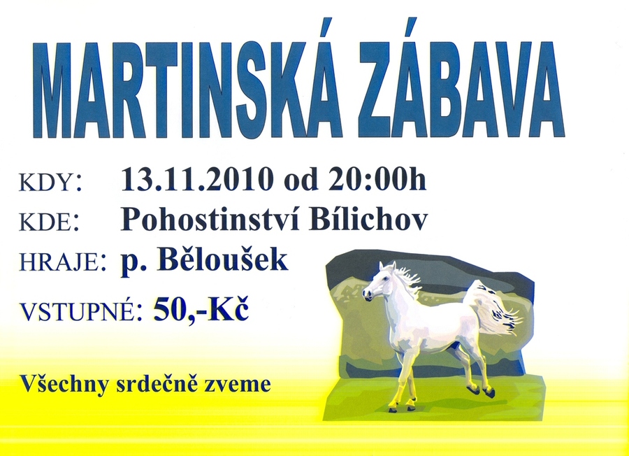 Všechny srdečně zveme na \"MARTINSKOU ZÁBAVU\" dne 13.11.2010.