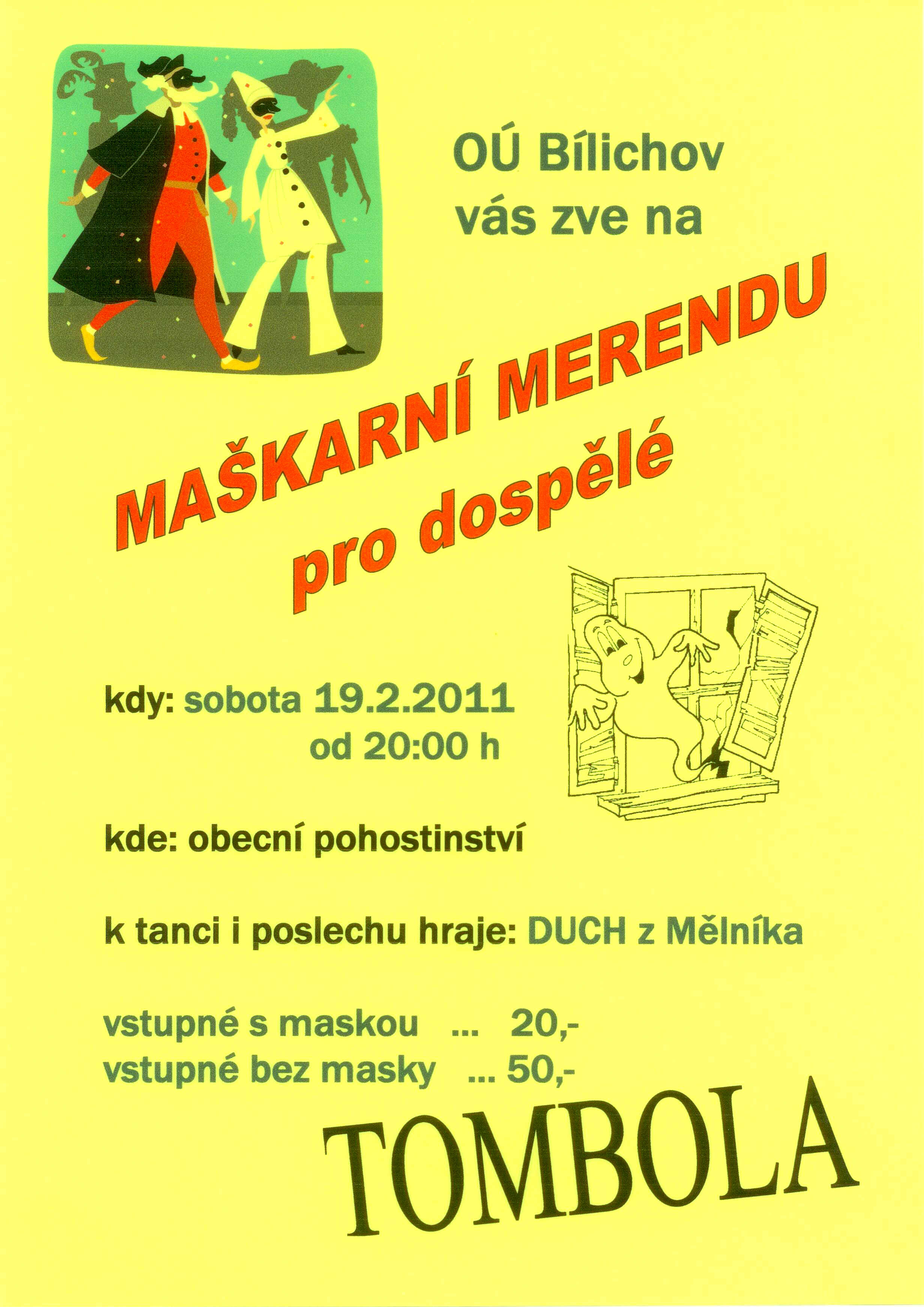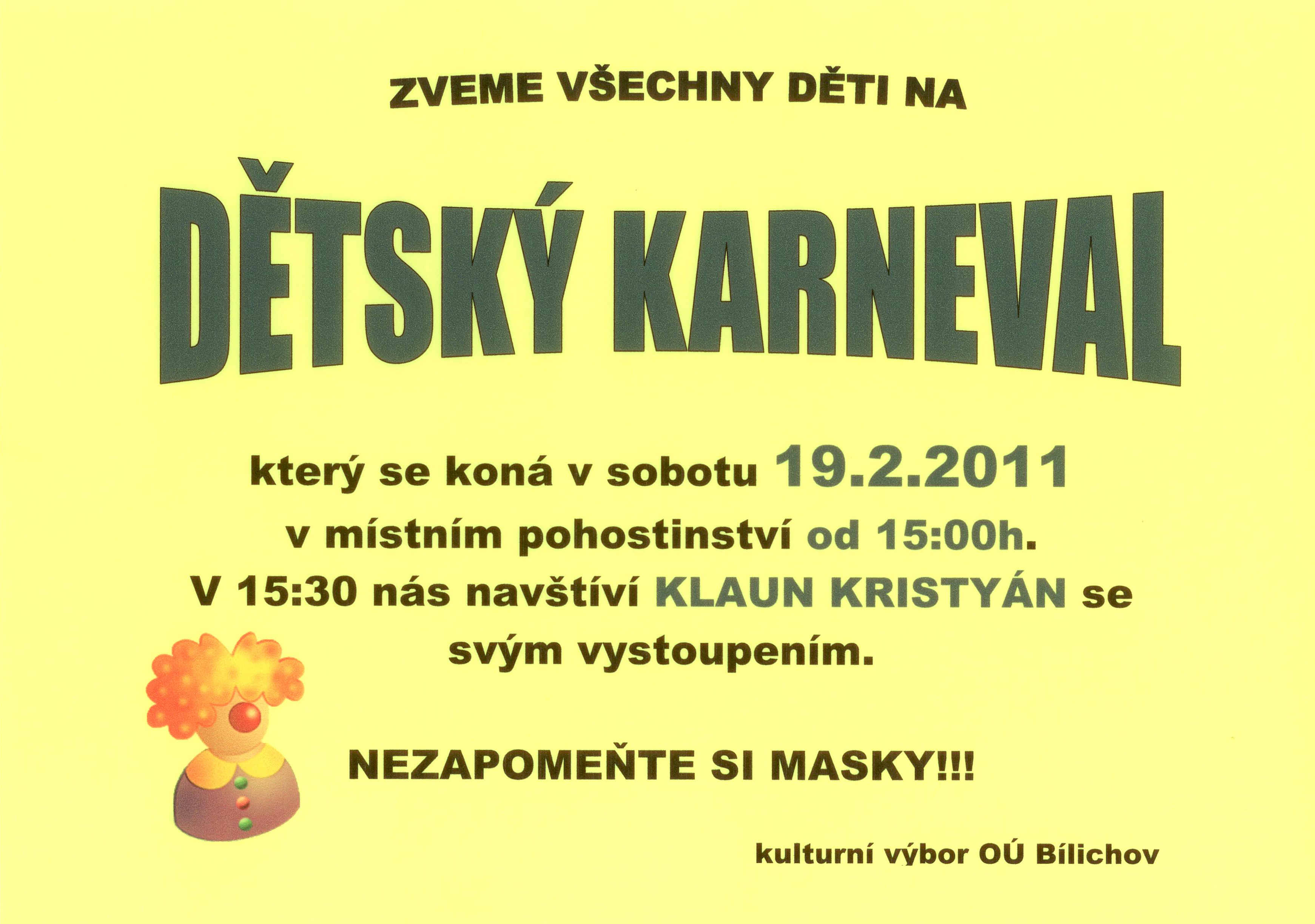 Úvod > Život v obci > Aktuality > POZVÁNKA - MAŠKARNÍ KARNEVAL PRO DĚTI, MAŠKARNÍ MERENDA PRO DOSPĚLÉ